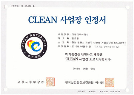 클린사업장 인정서